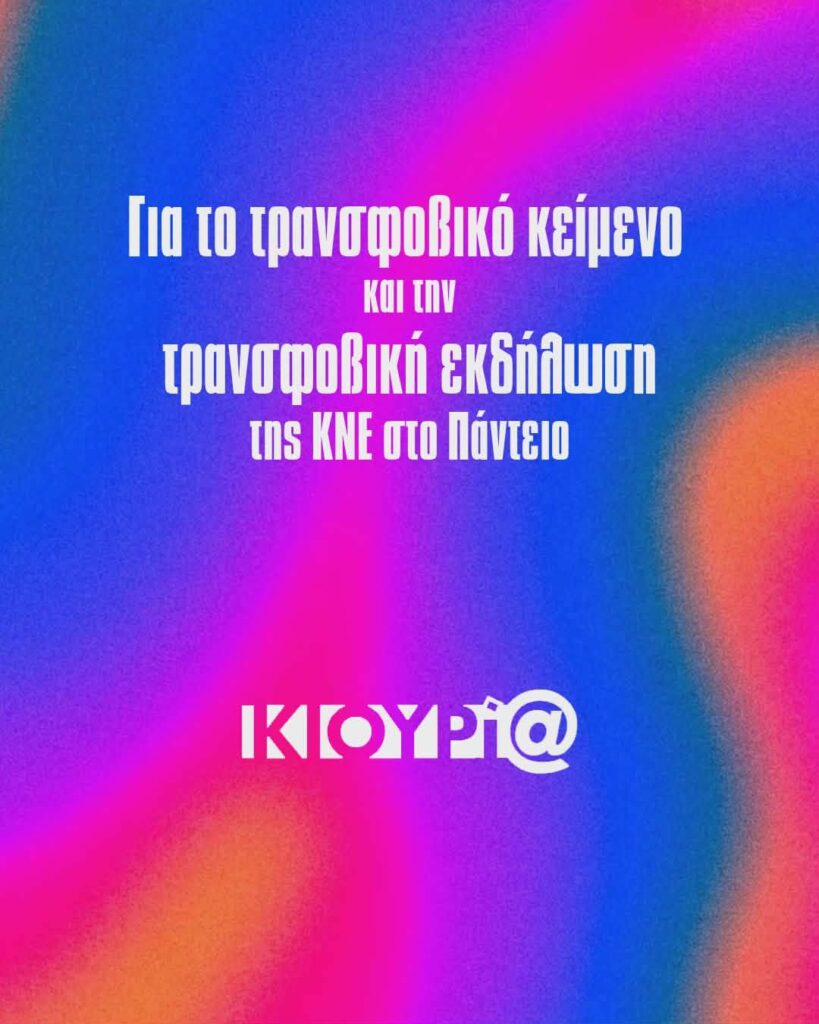 Το ΚΚΕ είναι γνωστό ότι συστηματικά και διαχρονικά είναι εχθρικό προς το κουίρ κίνημα. Έχει καταψηφίσει όλους τους – ελλιπέστατους – νόμους που βελτίωναν έστω και λίγο τις ζωές μας: το σύμφωνο συμβίωσης, τον γάμο, το δικαίωμα στην τεκνοθεσία, τη νομική αναγνώριση ταυτότητας φύλου. Από αυτή την άποψη, οι ομοτρανσφοβικές παρεμβάσεις της ΚΝΕ στα πανεπιστήμια δε μας προκαλούν έκπληξη, ωστόσο αρνούμαστε να τις αφήνουμε αναπάντητες. Θεωρούμε απαράδεκτο να διακινούνται τρανσφοβικές ιδέες στους χώρους του πανεπιστημίου, όπου σπουδάζει, κοινωνικοποιείται και πολιτικοποιείται ένα μεγάλο μέρος της νεολαίας, δηλαδή των αυριανών εργαζόμενων, επιστημόνων και ερευνητριών.